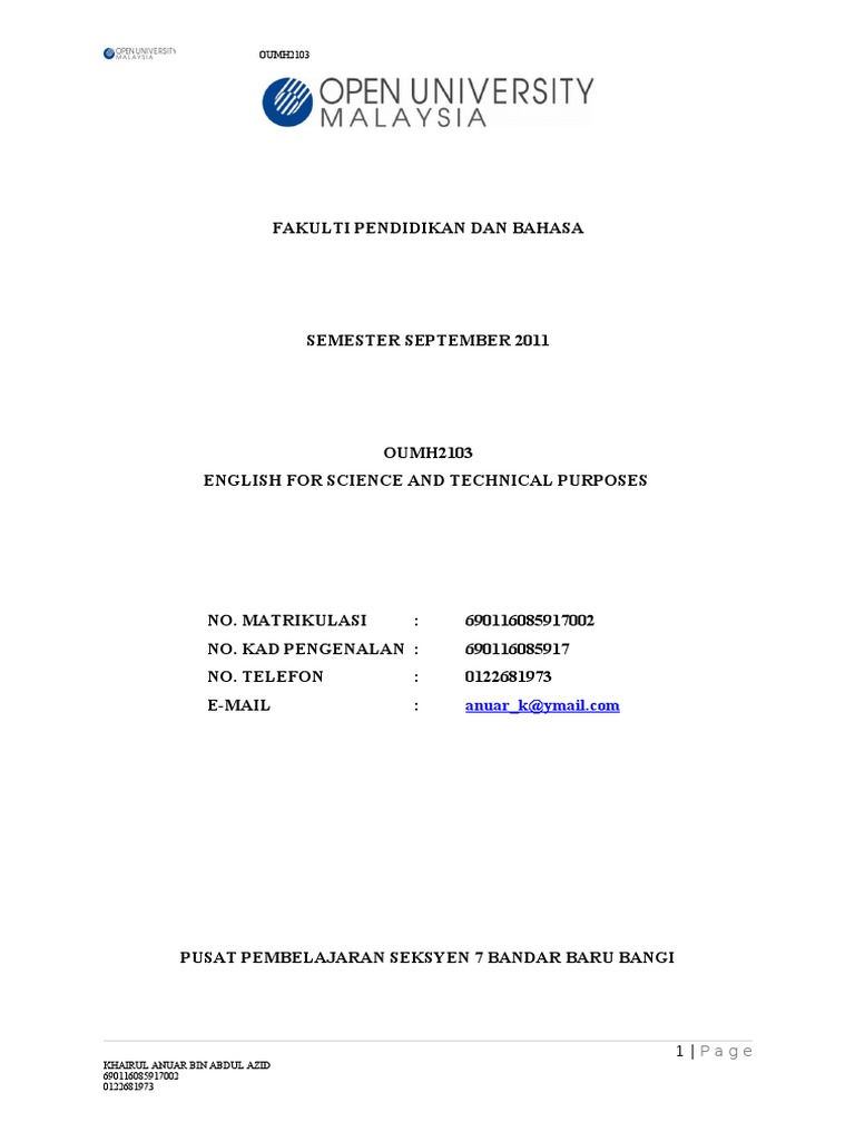 Assignment Oumh2103 English For Science Technical Purposes Pdf Geothermal Energy Hybrid Vehicle